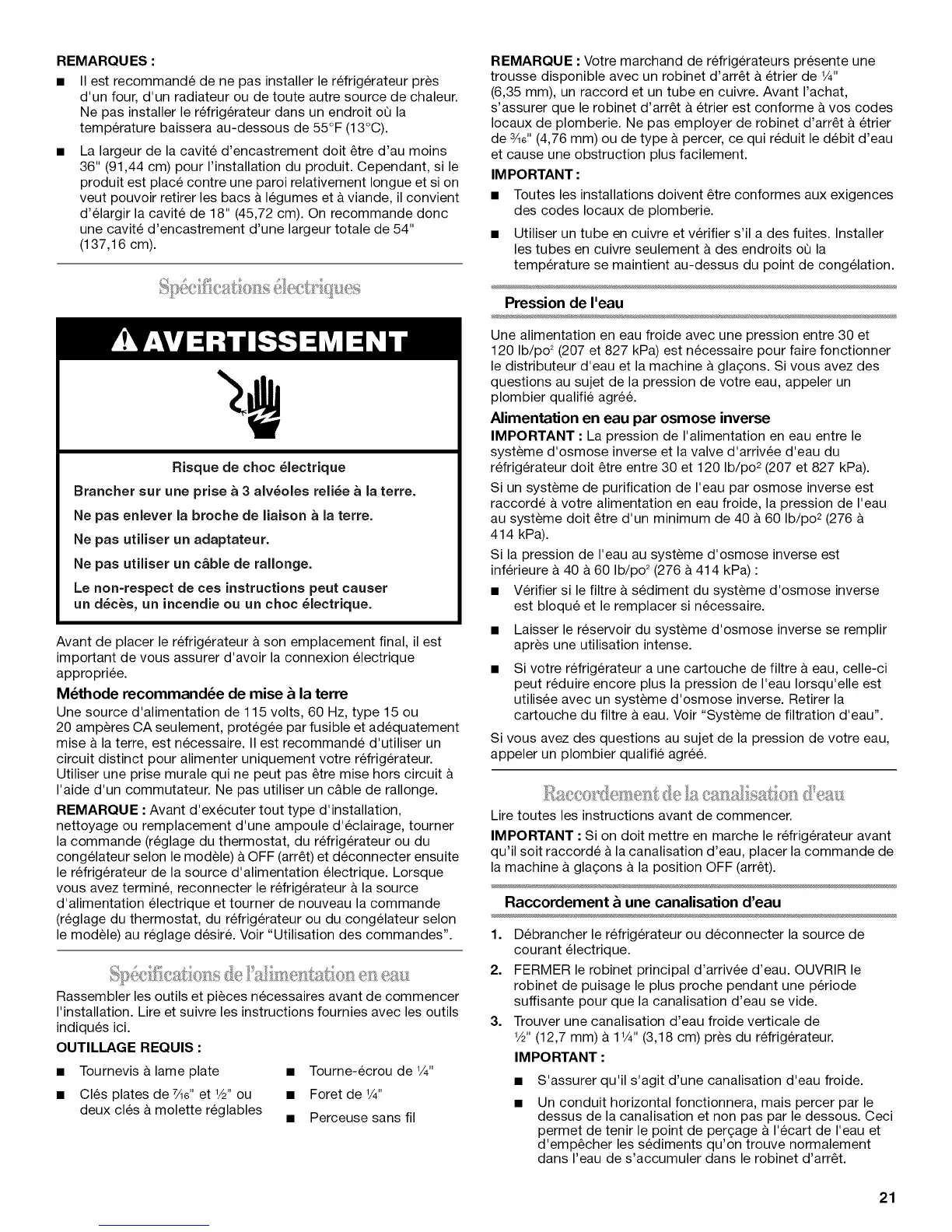 refrigerateur dolt etre entre 30 et 120 Ib/po 2(207 et 827 kPa).