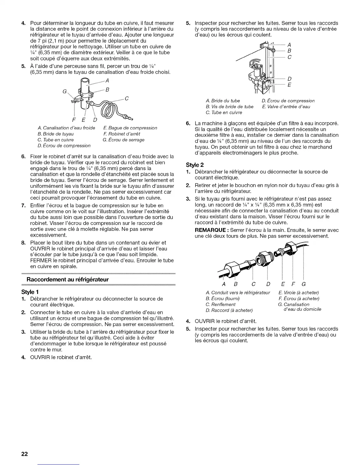 1/4"(6,35 mm) de diam_tre exterieur. Veiller & ce que le tube