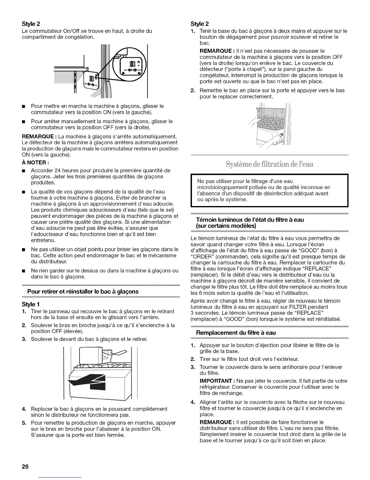 Pour retirer et r6installer le bac & glagons