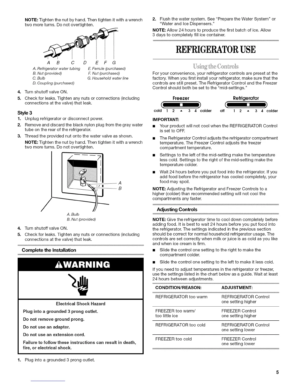 NOTE: Adjusting the Refrigerator and Freezer Controls to a