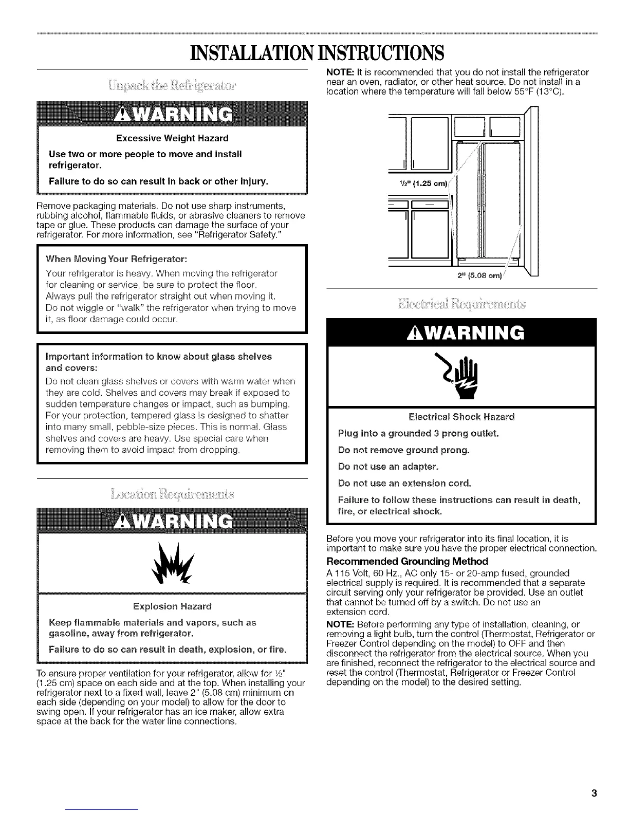 refrigerator next to a fixed wall, leave 2" (5.08 cm) minimum on