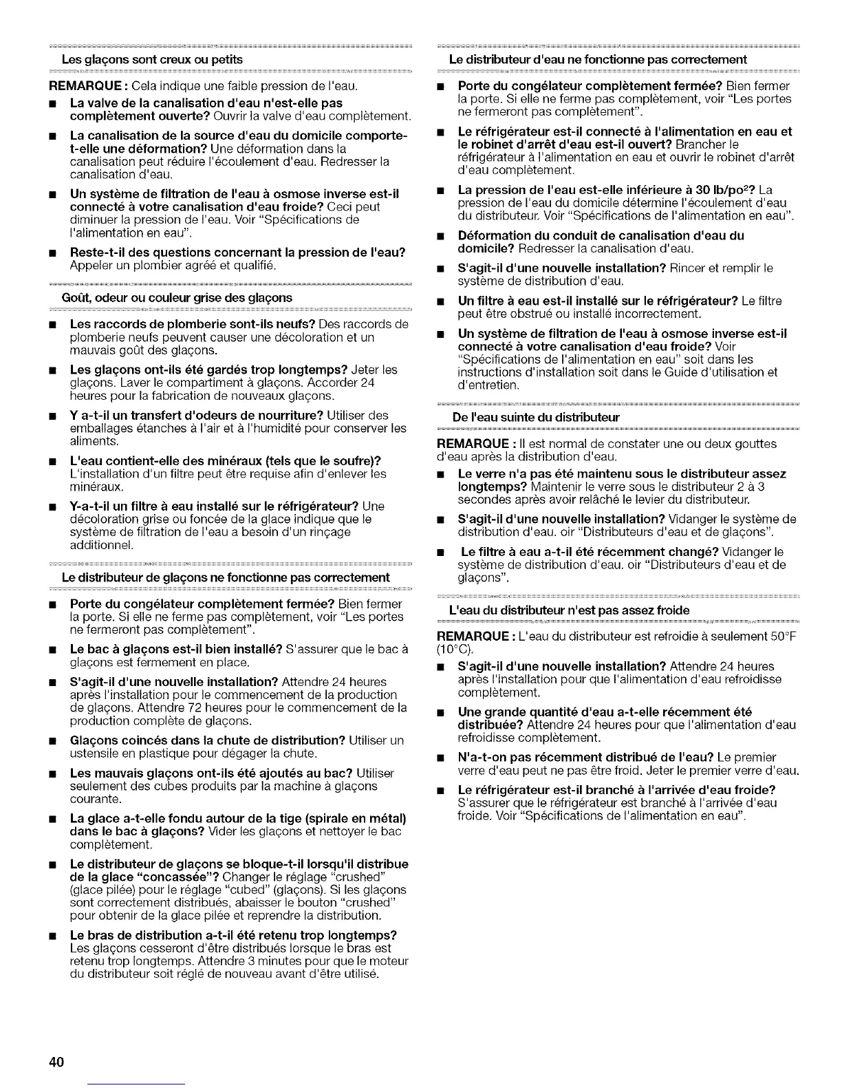 • Le bac a gla£ons est-il bien installS? S'assurer que le bac