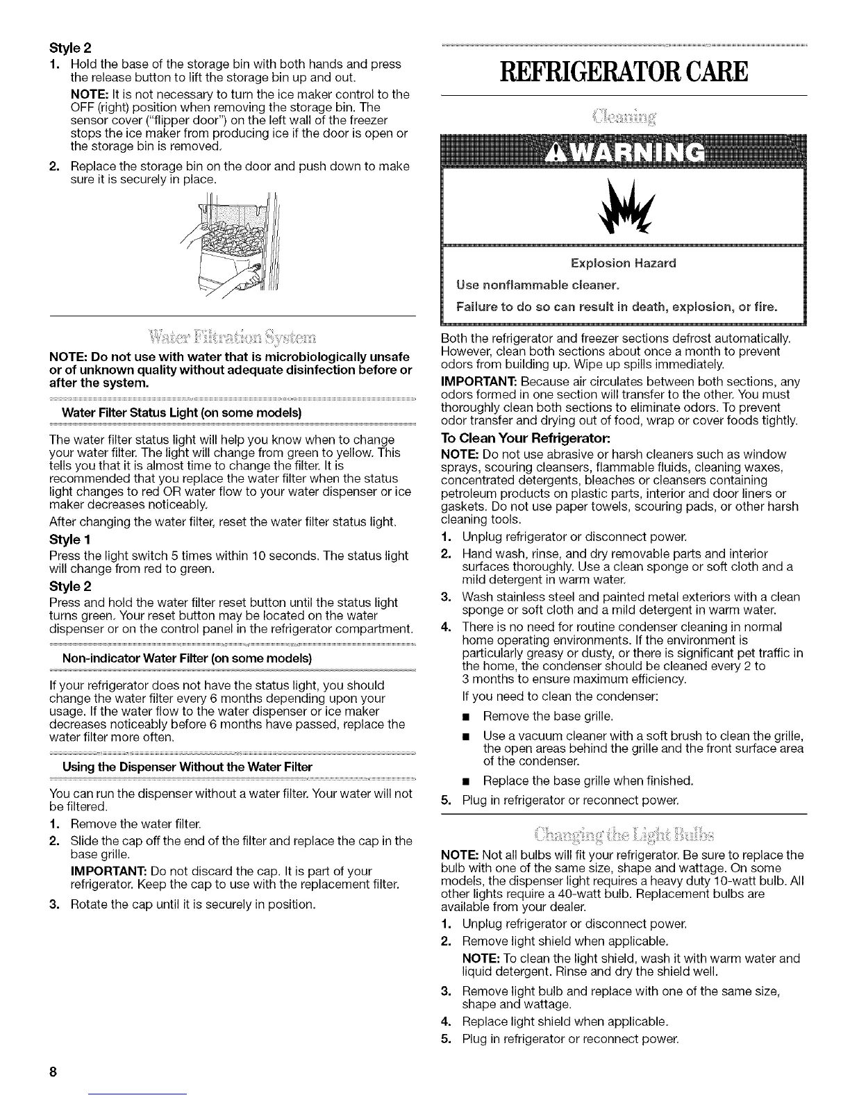 models, the dispenser light requires a heavy duty 10-watt bulb. All