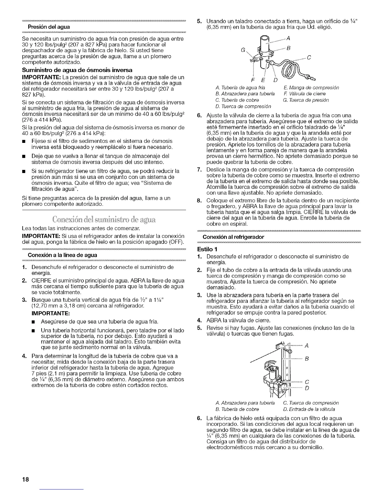 (6,35 mm) en la tuberia de agua fria que Ud. eligi6.