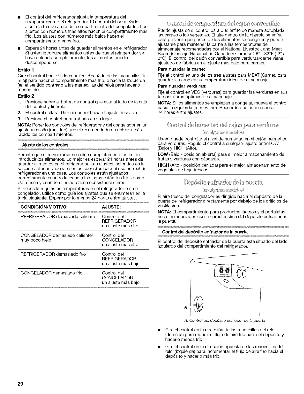 NOTA: Poner los controles del refrigerador y del congelador en un