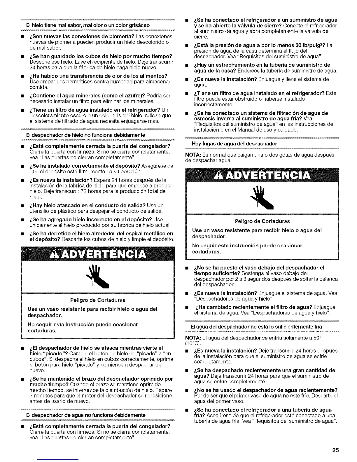 • &No se ha usado el despachador de agua recientemente?