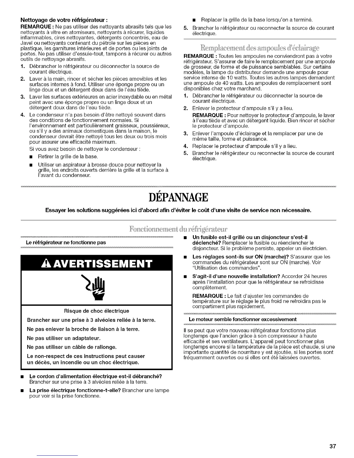 refrigerateur. S'assurer de faire le remplacement par une ampoule
