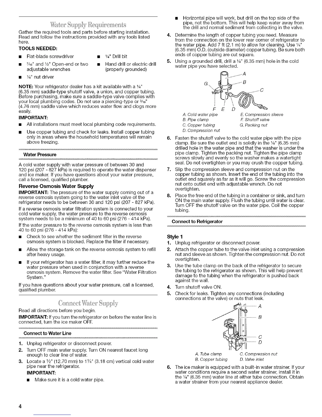 the 1/4"(6.35 mm) water line at either tube connection. Obtain
