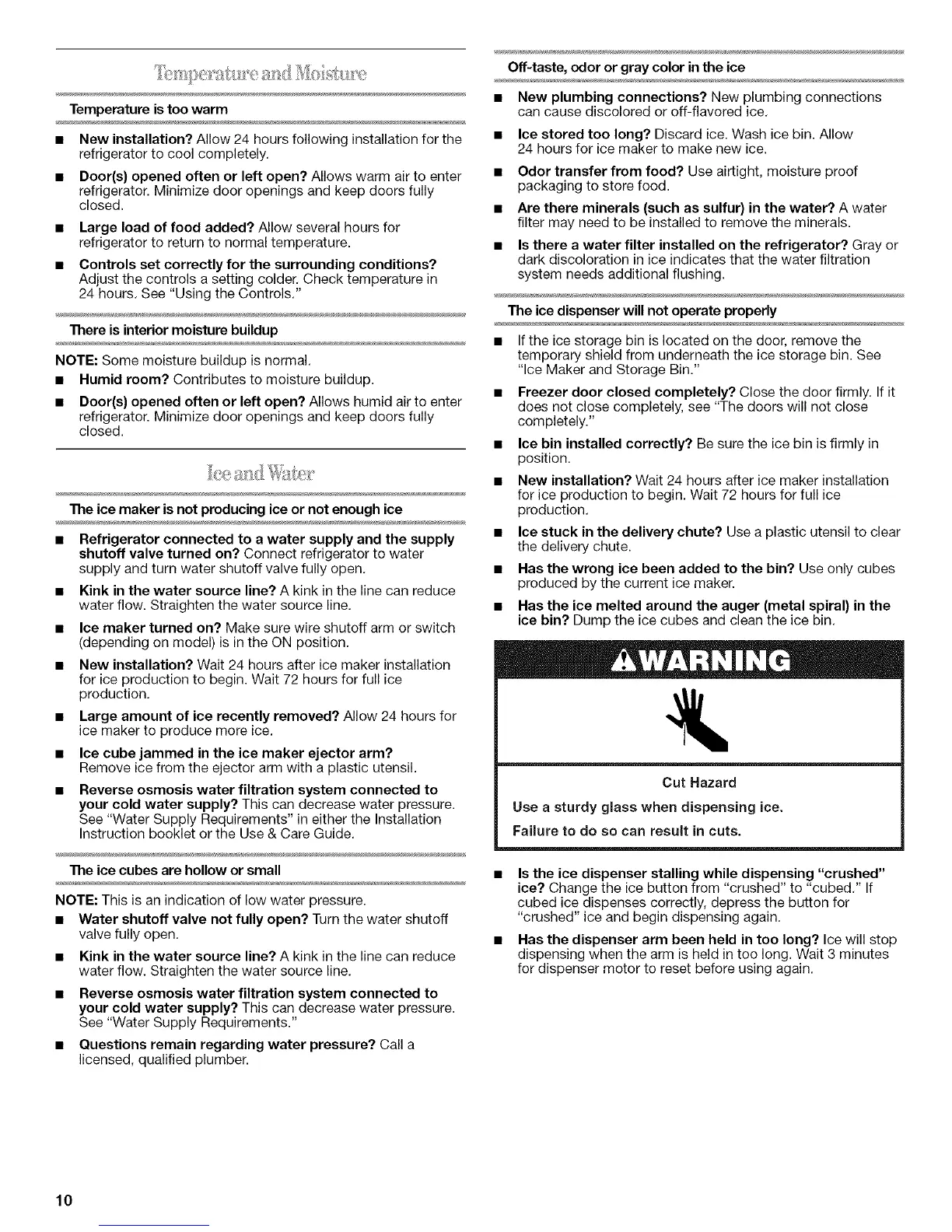 • Ice maker turned on? Make sure wire shutoff arm or switch