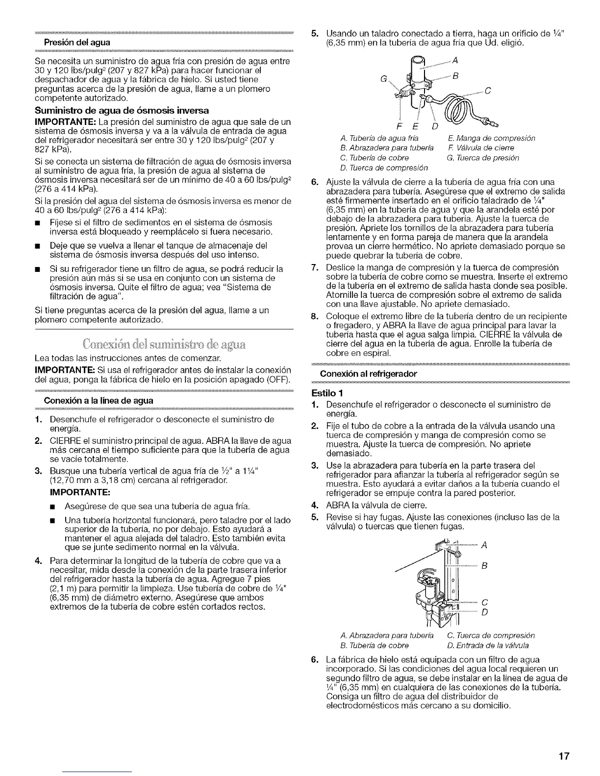 (6,35 mm) en la tuberia de agua fria que Ud. eligi6.