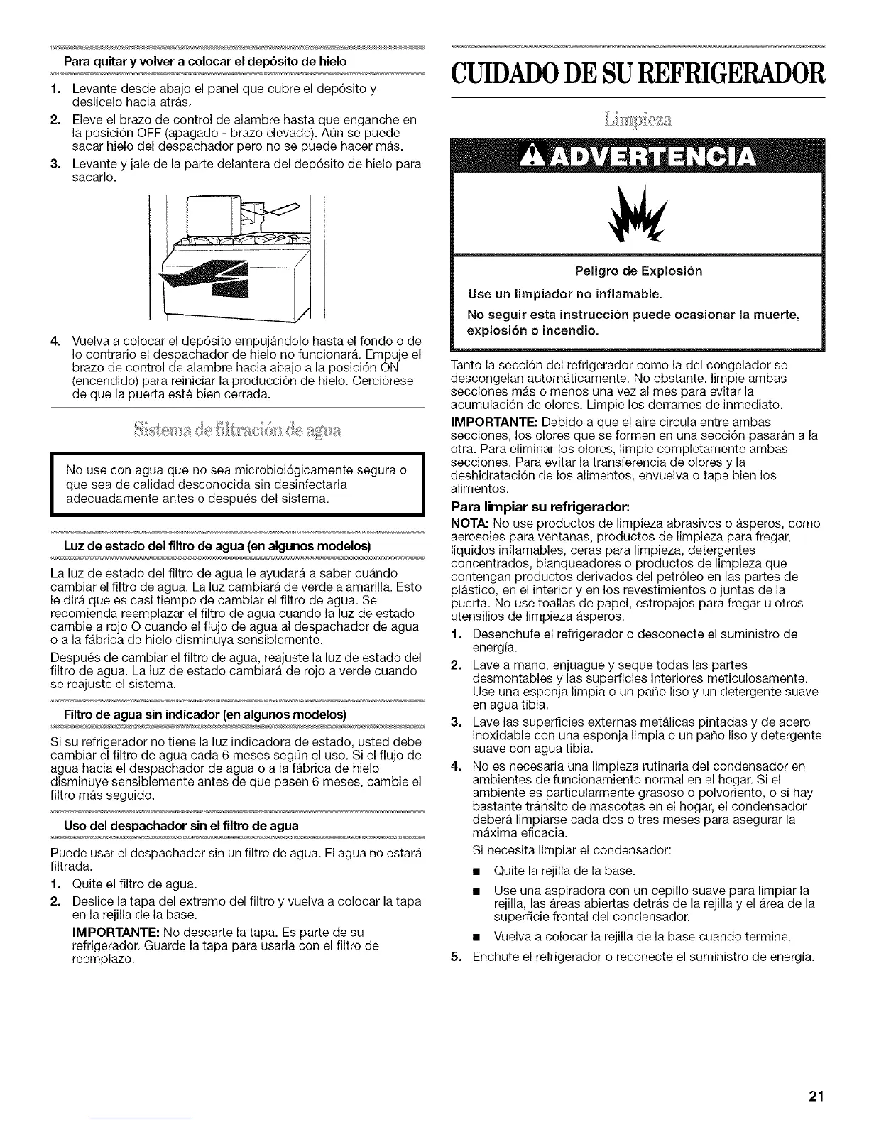 3. Levante y jale de la parte delantera del dep6sito de hielo para
