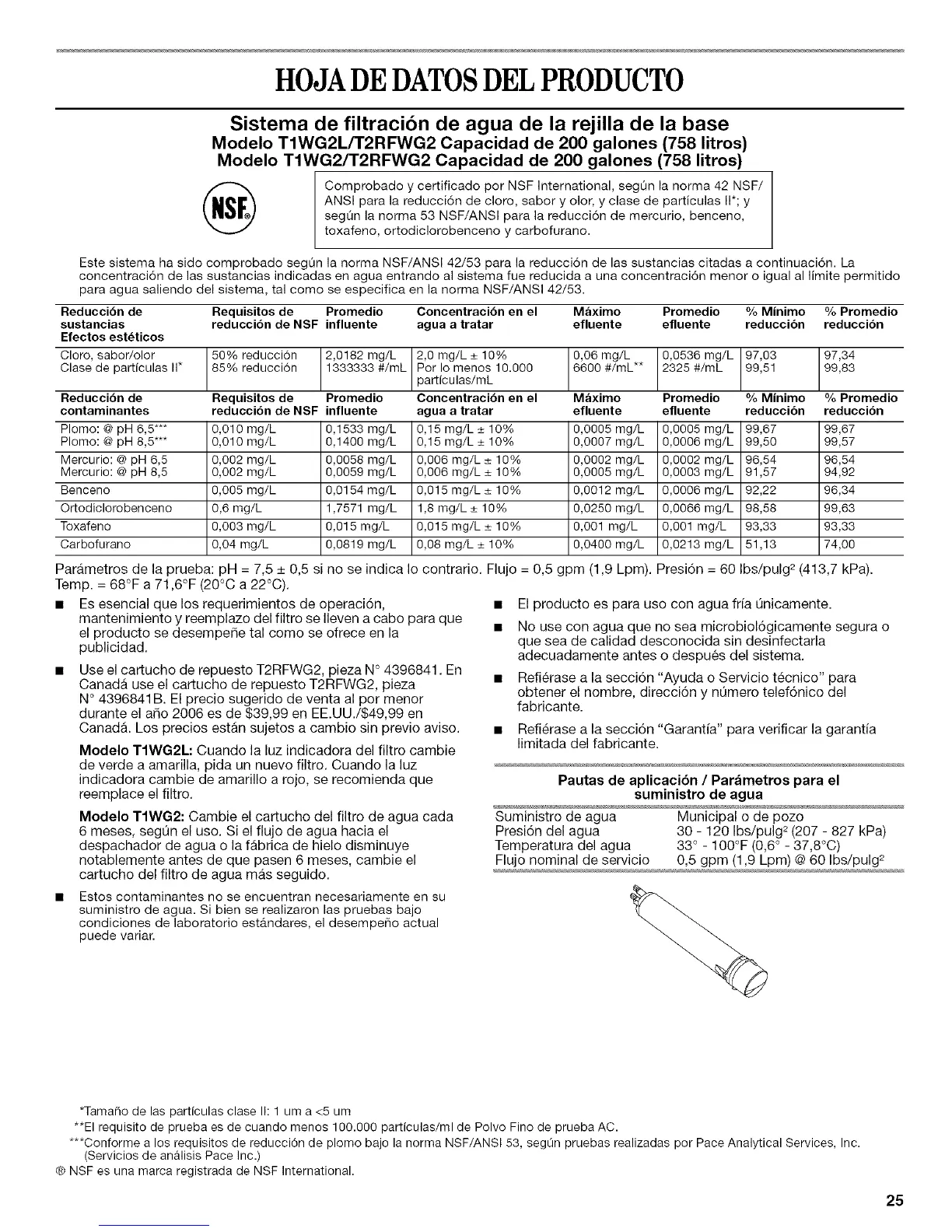 Comprobado y certificado por NSF International, segOn la norma 42 NSF/
