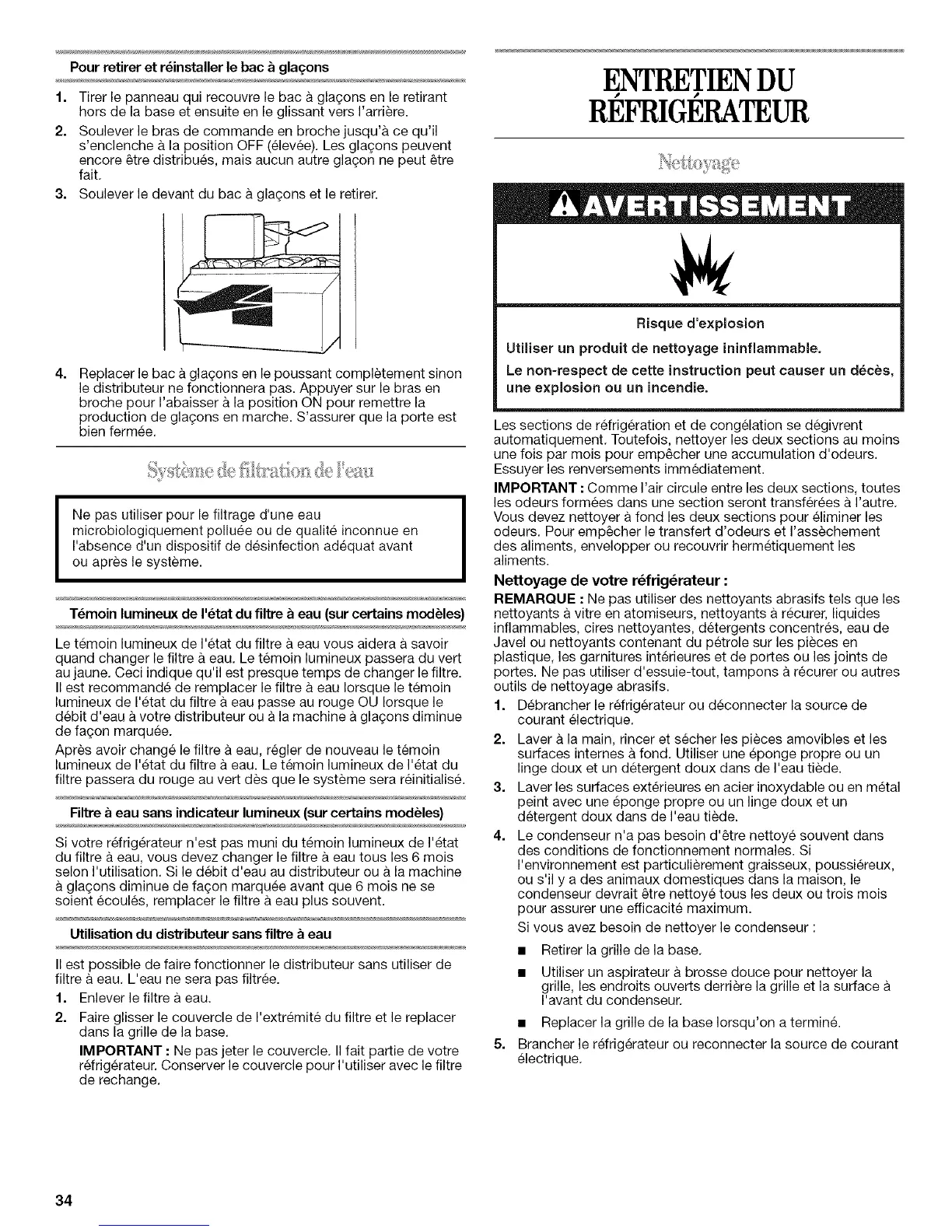 soient ecoul6s, remplacer le filtre a eau plus souvent.