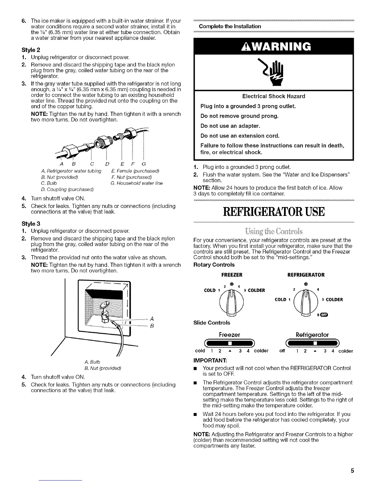• The Refrigerator Control adjusts the refrigerator compartment