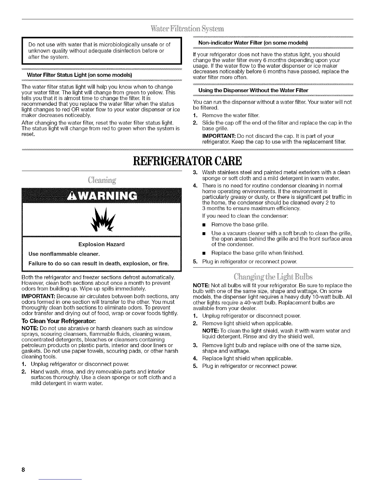 models, the dispenser light requires a heavy duty 10-watt bulb. All