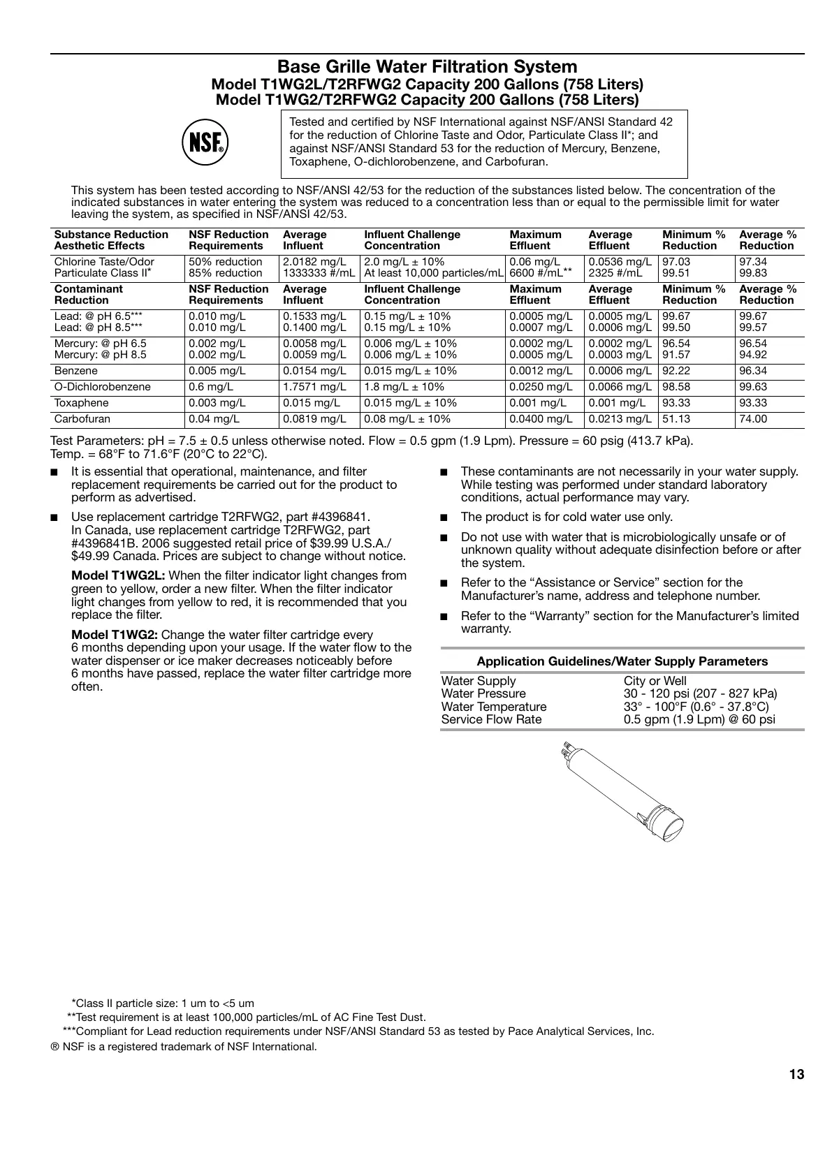 ■ Use replacement cartridge T2RFWG2, part #4396841.