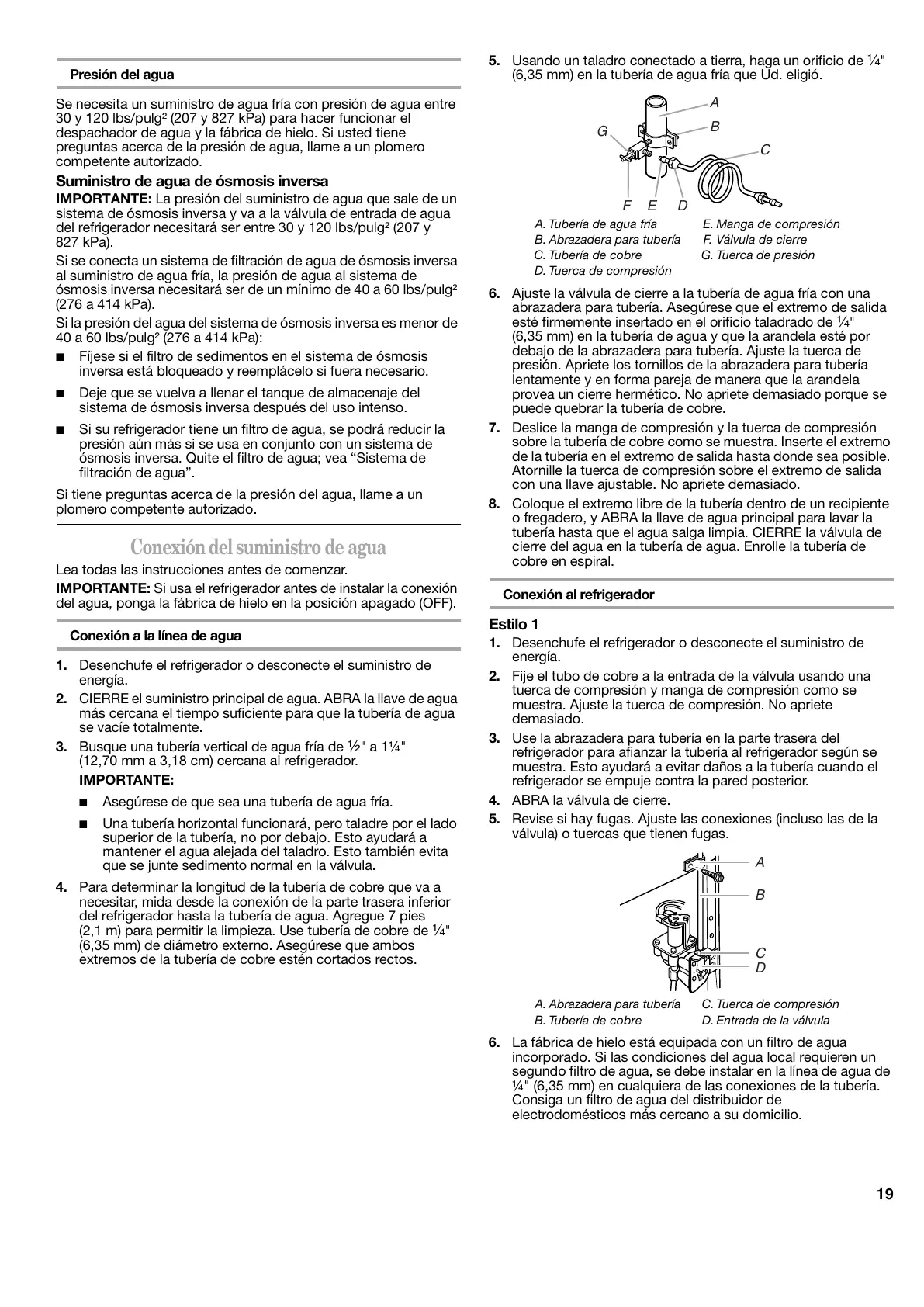 (6,35 mm) en la tubería de agua fría que Ud. eligió.