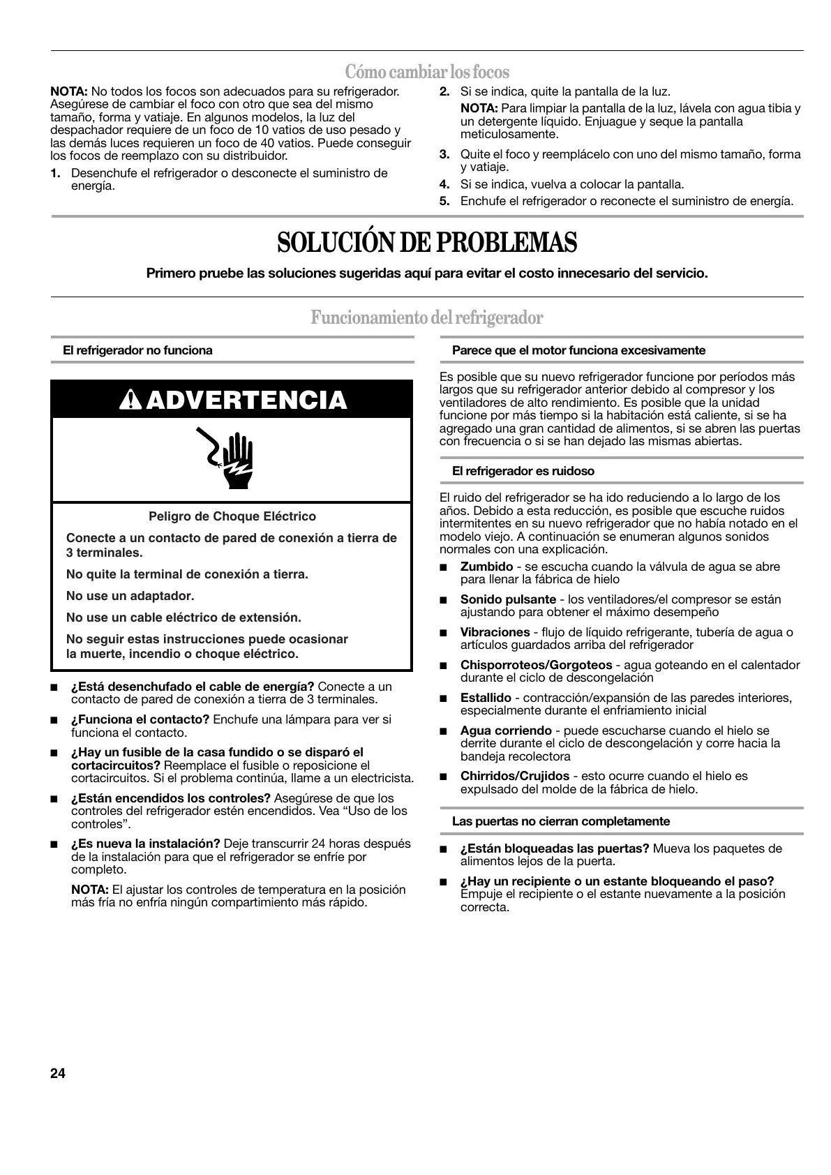 cortacircuitos. Si el problema continúa, llame a un electricista.
