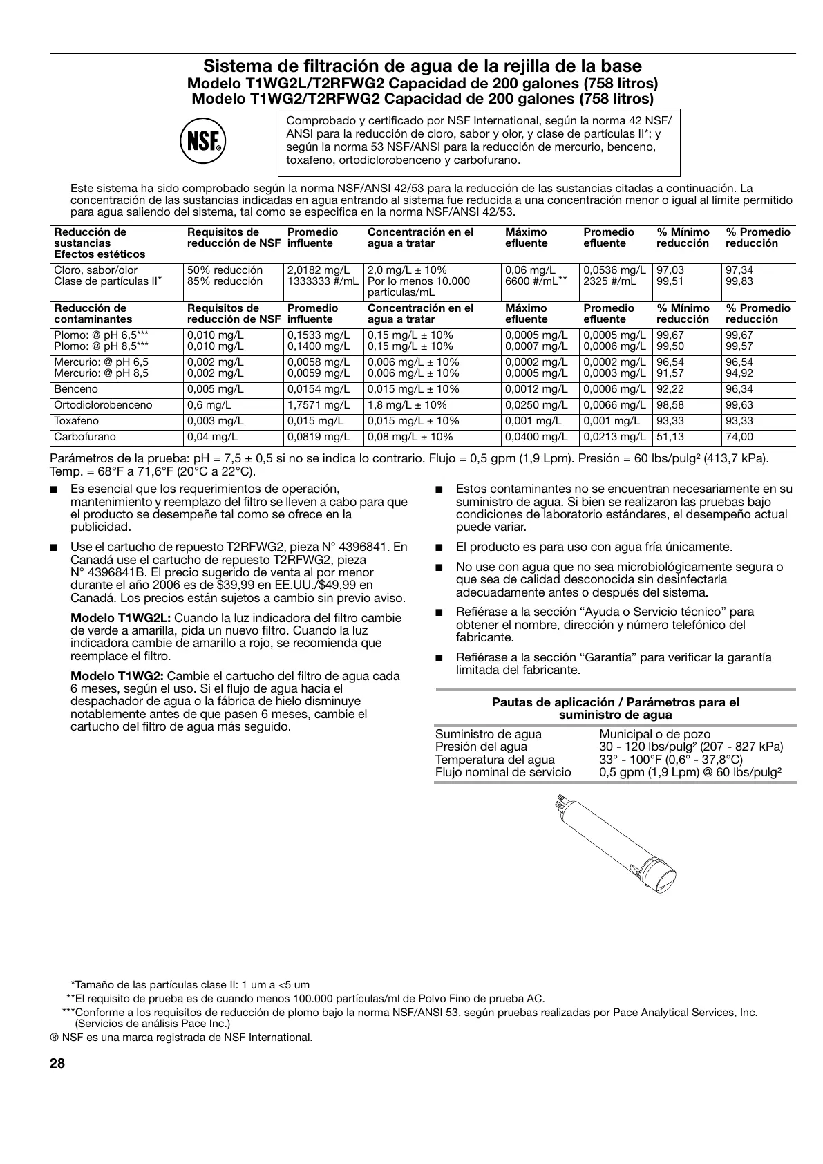 ■ Use el cartucho de repuesto T2RFWG2, pieza N° 4396841. En