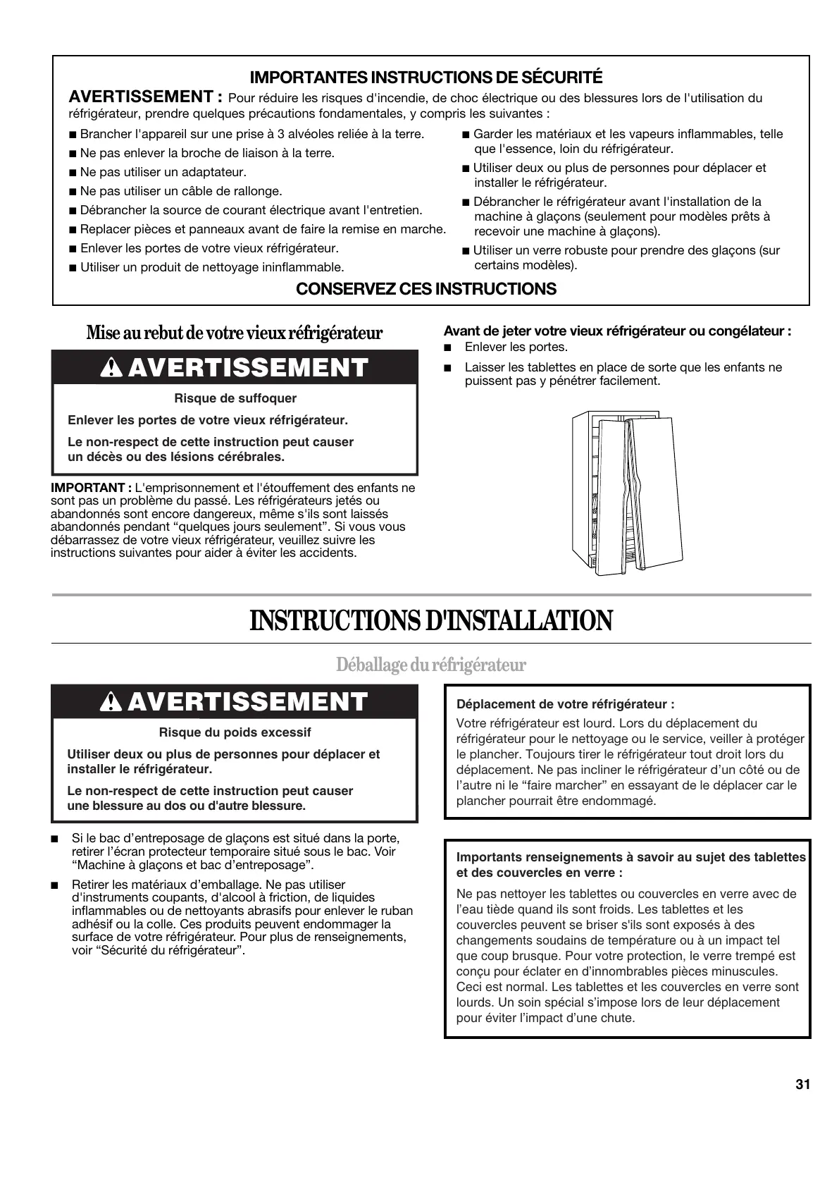 voir “Sécurité du réfrigérateur”.