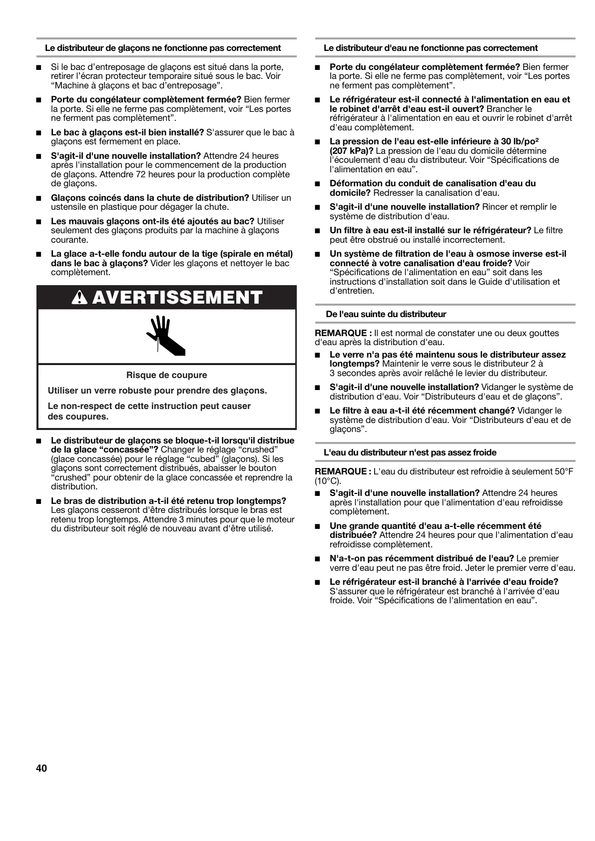 distribution d'eau. Voir “Distributeurs d'eau et de glaçons”.