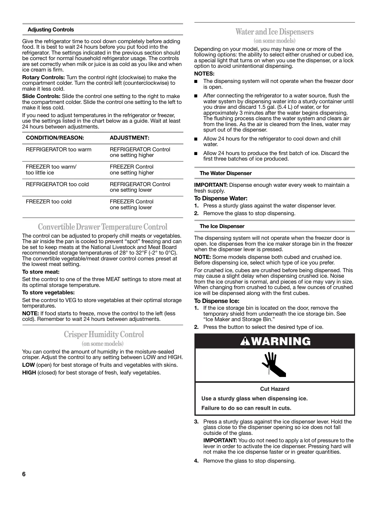 NOTE: Some models dispense both cubed and crushed ice.