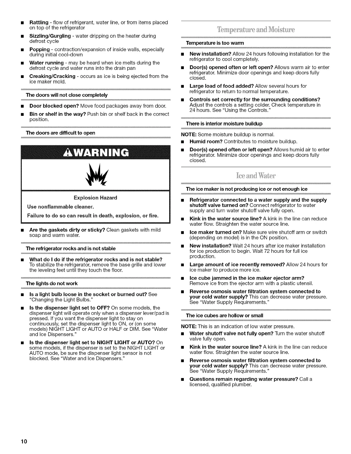 • Ice maker turned on? Make sure wire shutoff arm or switch
