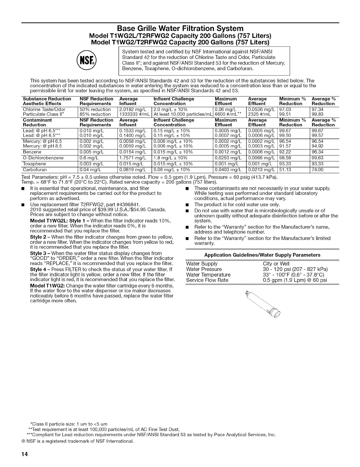 • Use replacement filter T2RFWG2, part #4396841.