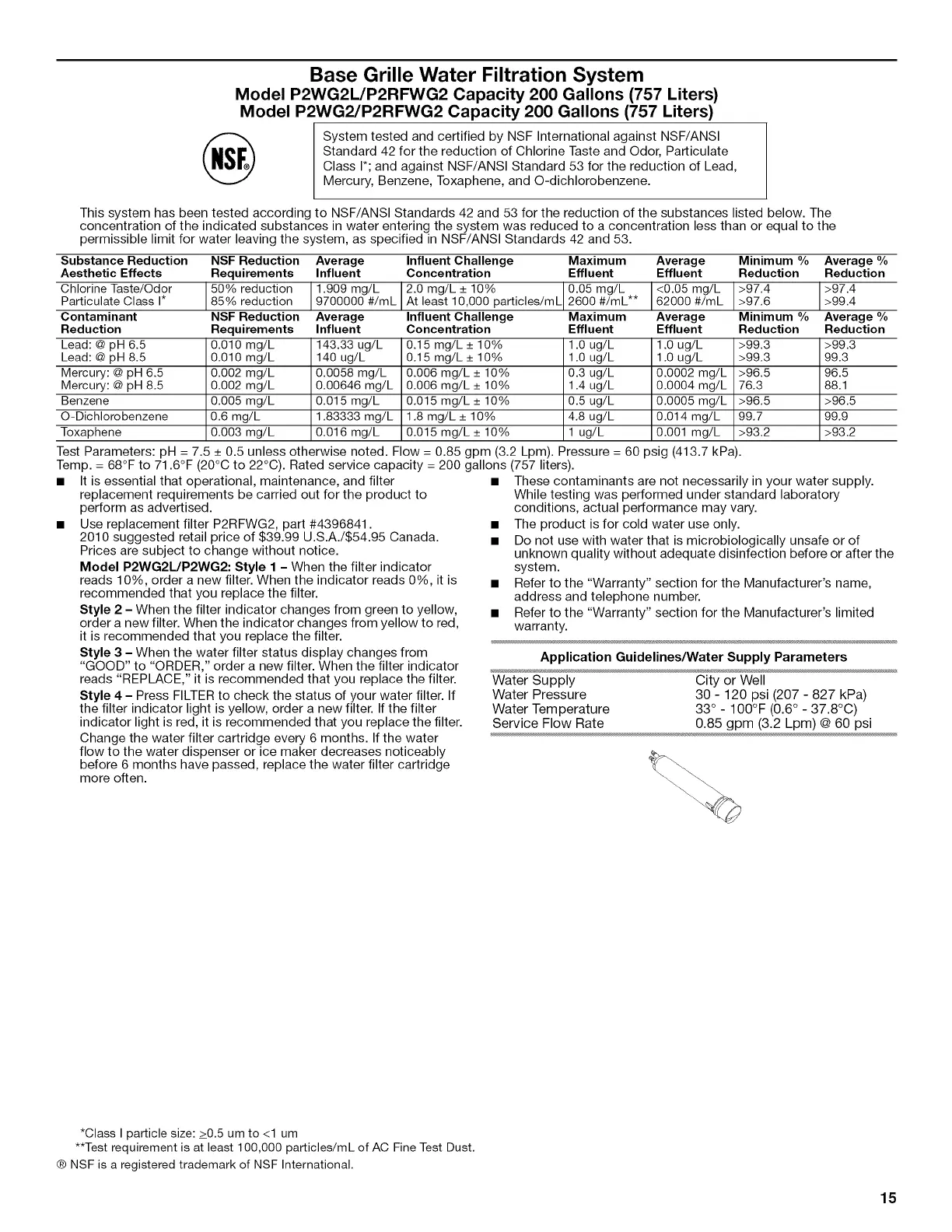 Model P2WG2L/P2WG2: Style 1 - When the filter indicator