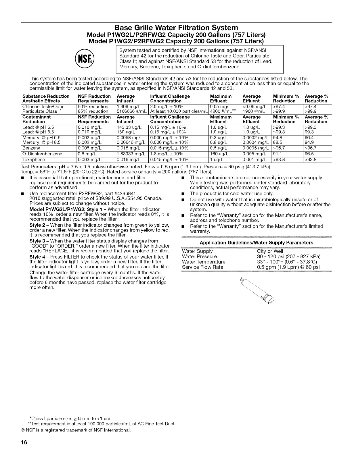 This system has been tested according to NSF/ANSI Standards 42 and 53 for the reduction of the substances listed below. The