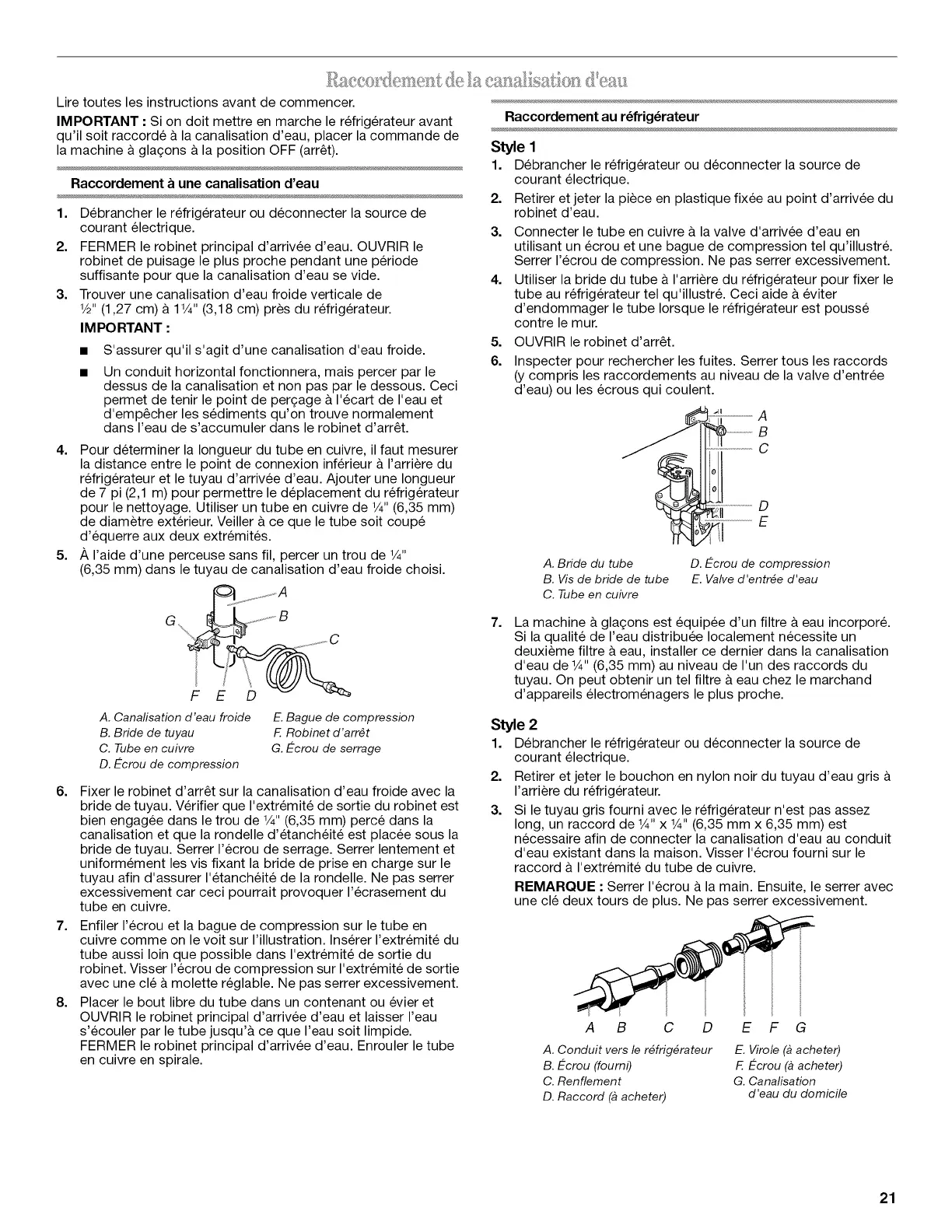 refrigerateur et le tuyau d'arrivee d'eau. Ajouter une Iongueur