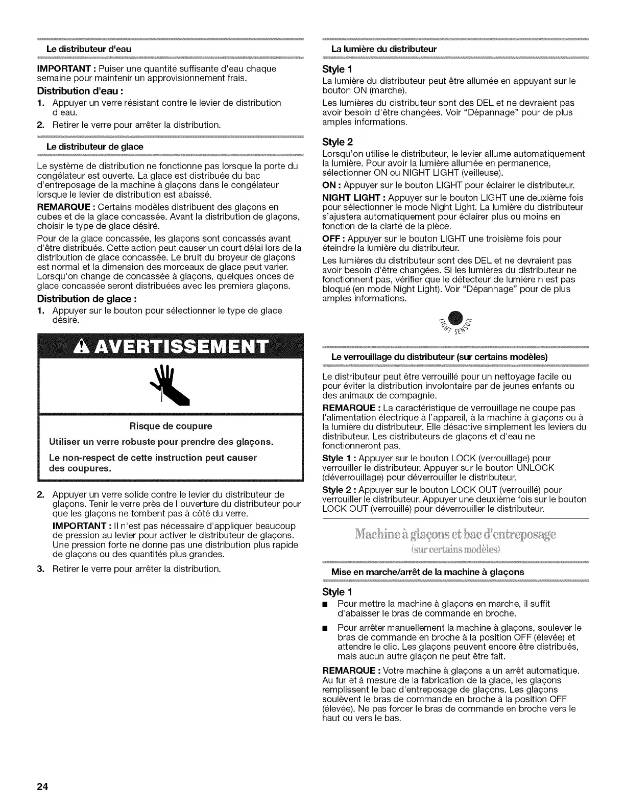 distributeur. Les distributeurs de gla£;ons et d'eau ne