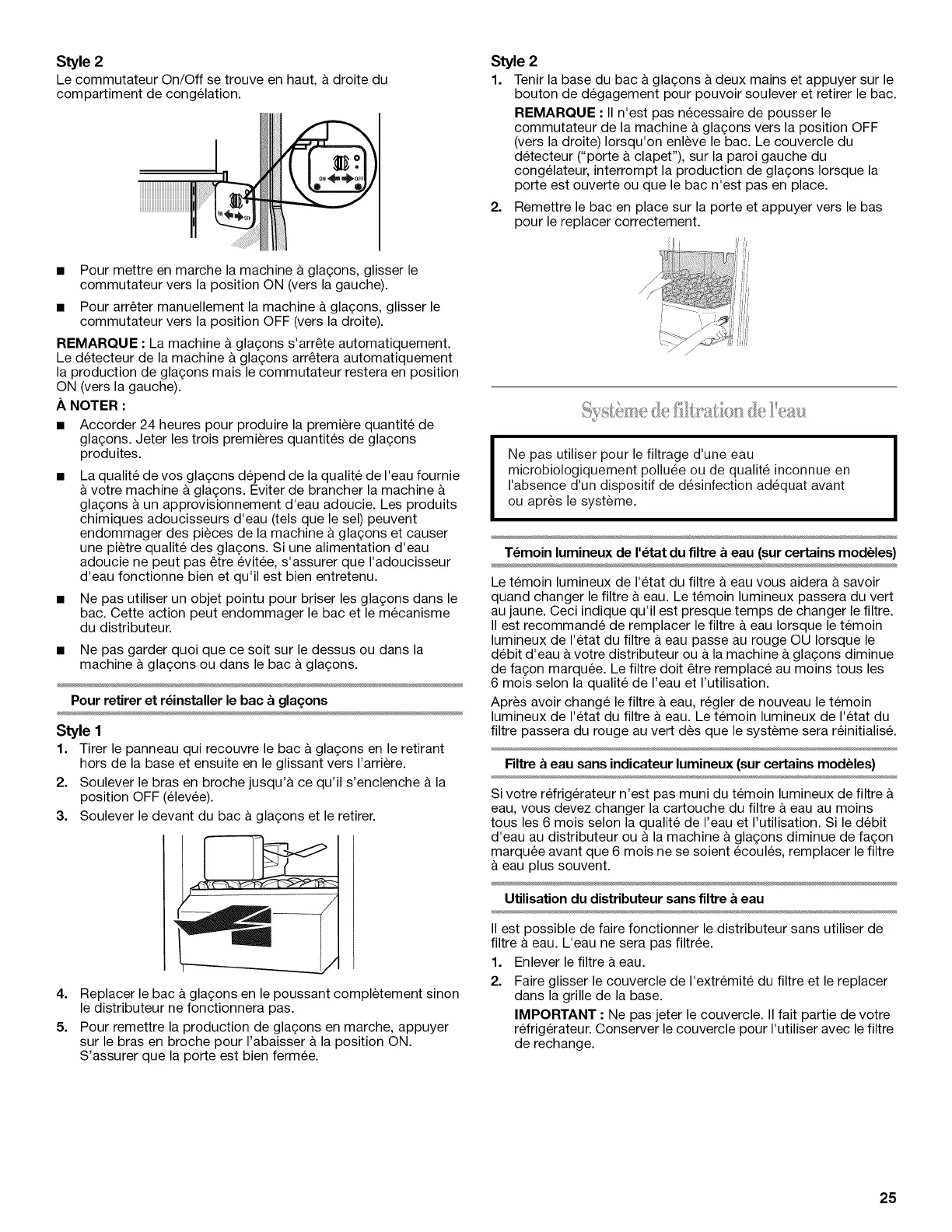 lumineux de I'etat du filtre & eau. Le temoin lumineux de I'etat du