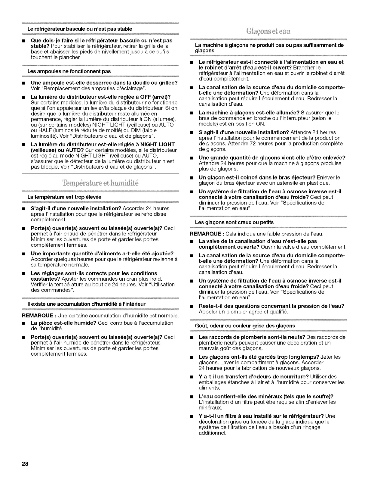 luminosite). Voir "Distributeurs d'eau et de gla£;ons".