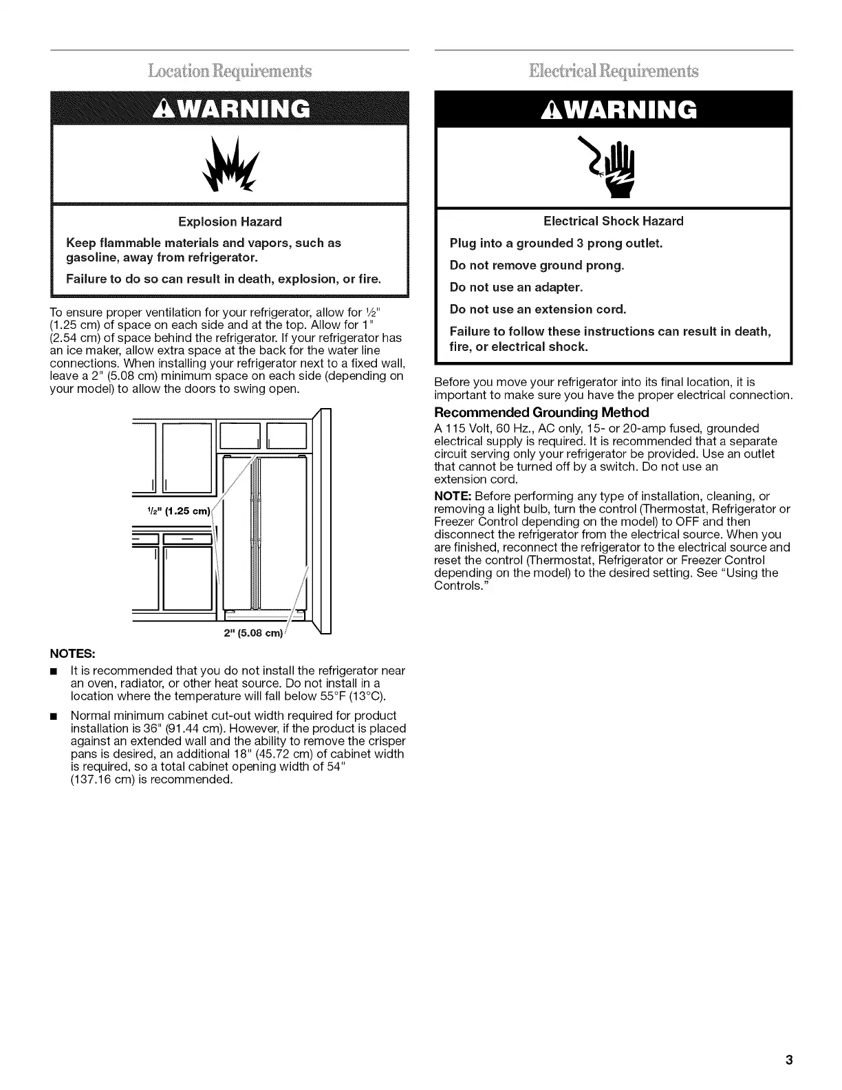 (2.54 cm) of space behind the refrigerator. If your refrigerator has