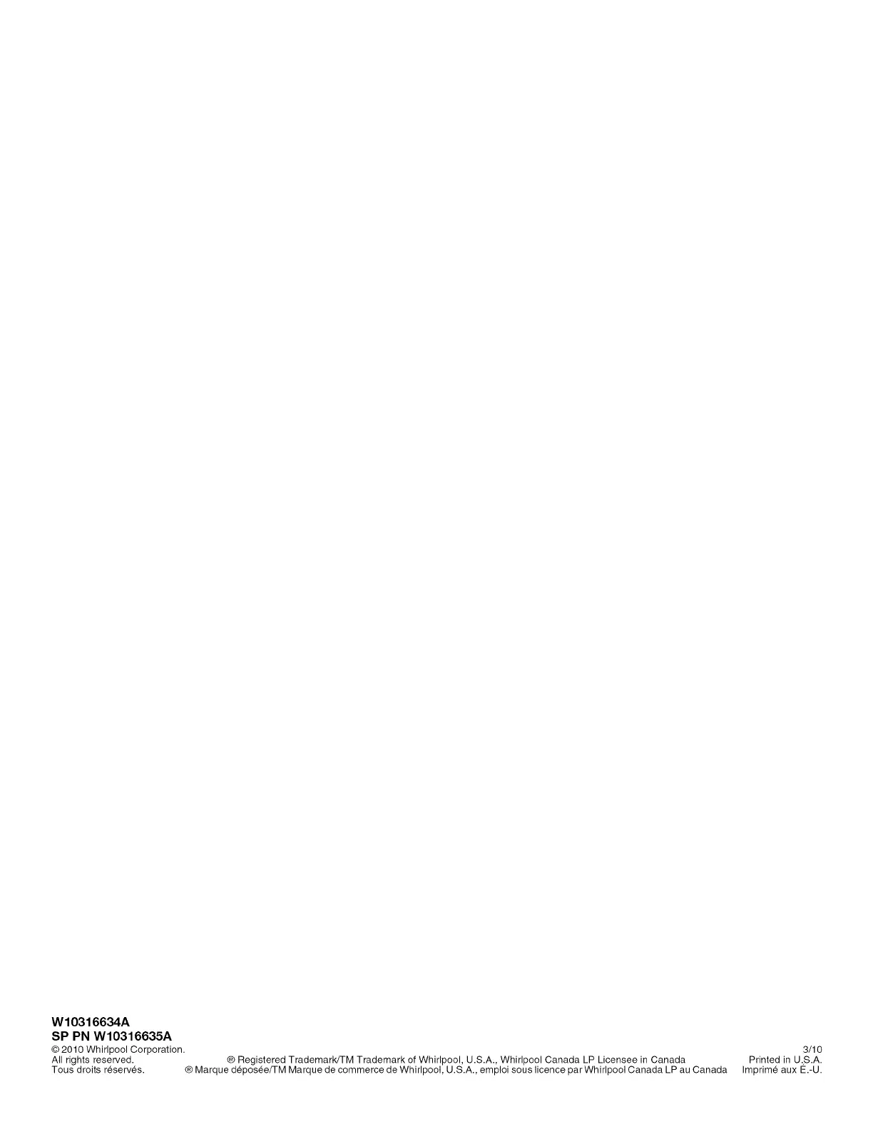 Tous droits reserves. ® Marque deposee/TM Marque de commerce de Whirlpool, U.S.A., emploi sous licence par Whirlpool Canada LP au Canada