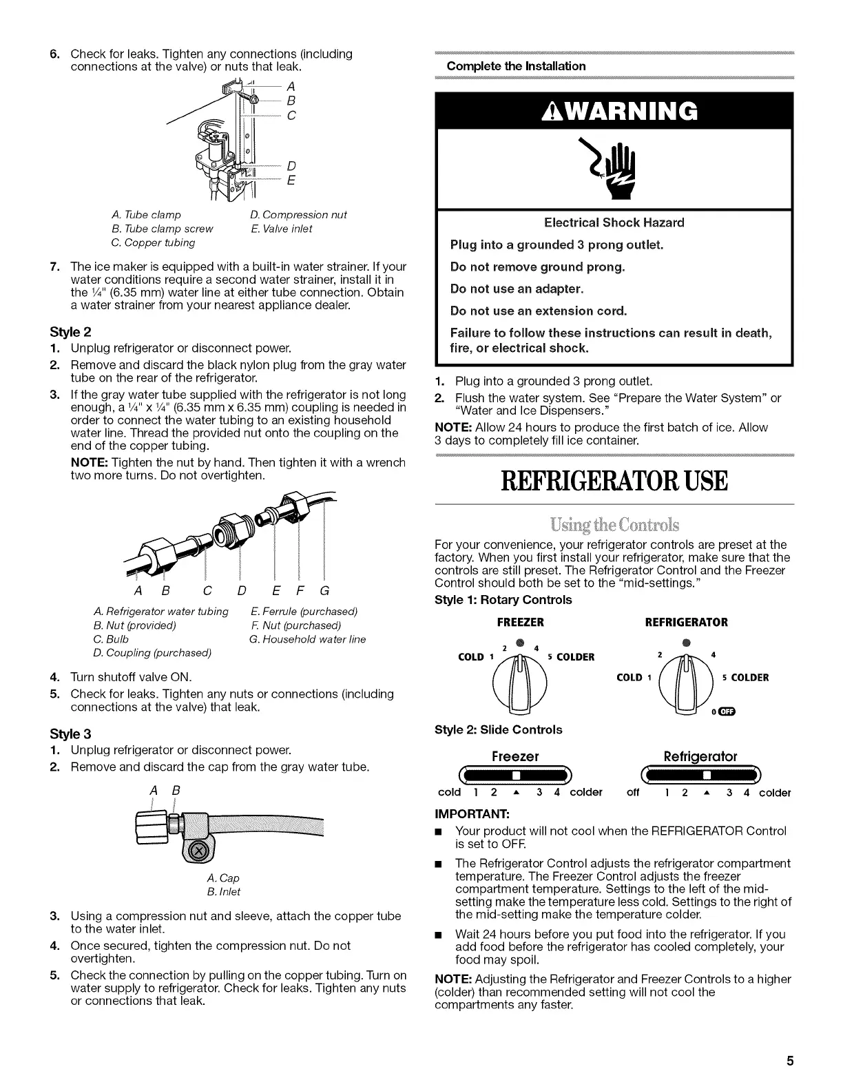 the 1/4"(6.35 mm) water line at either tube connection. Obtain