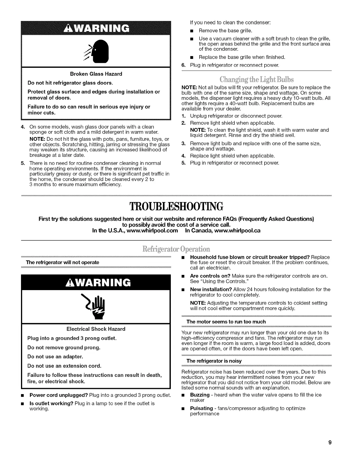 models, the dispenser light requires a heavy duty 10-watt bulb. All