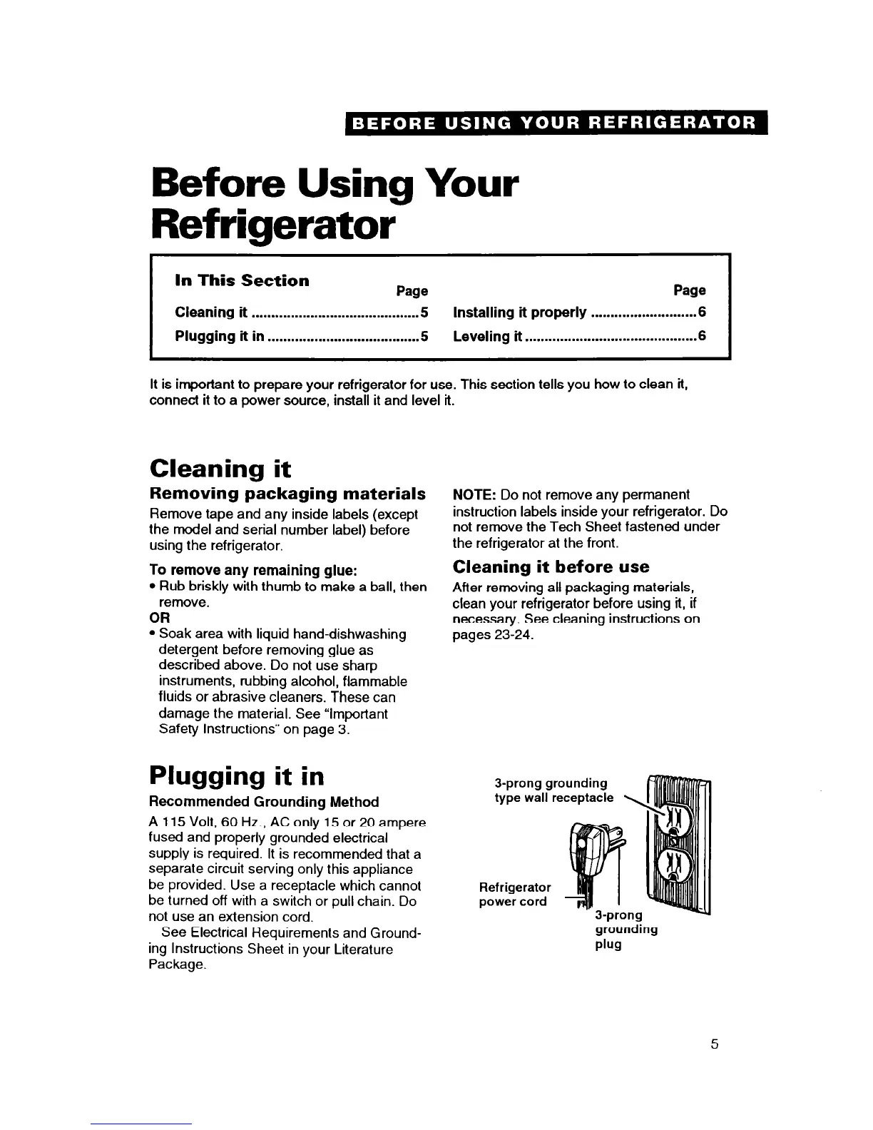 It is important to prepare your refrigerator for use. This section tells you how to clean it,