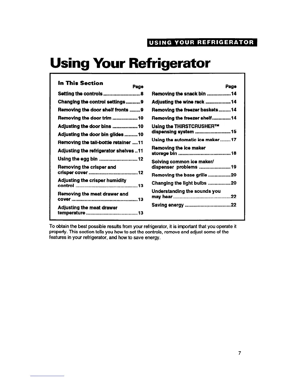 To obtain the best possible results from your refrigerator, it is important that you operate it