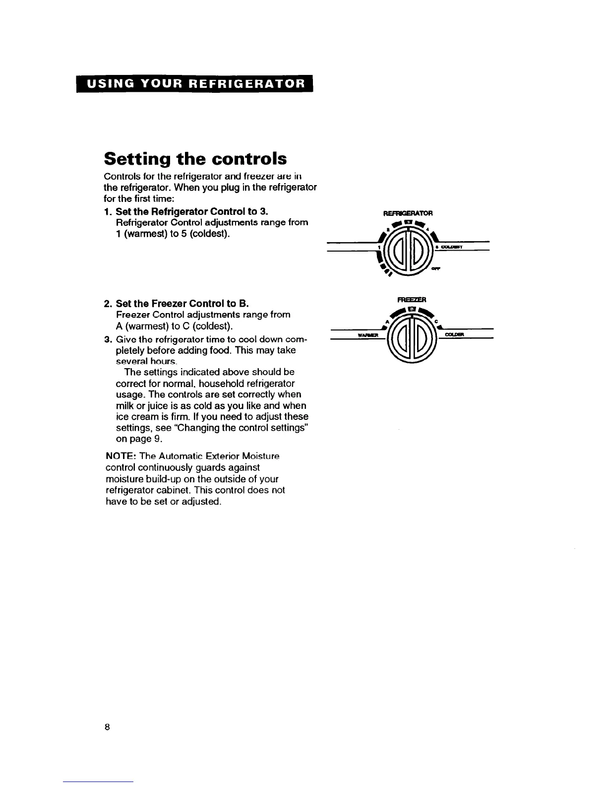Refrigerator Control adjustments range from
