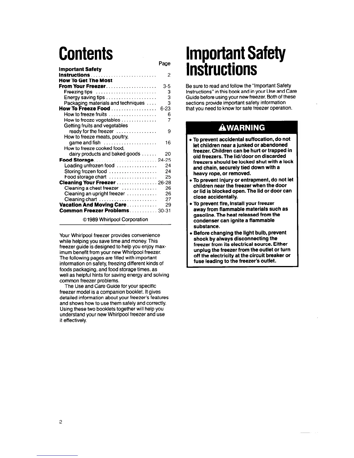 imum benefit from your new Whirlpool freezer.