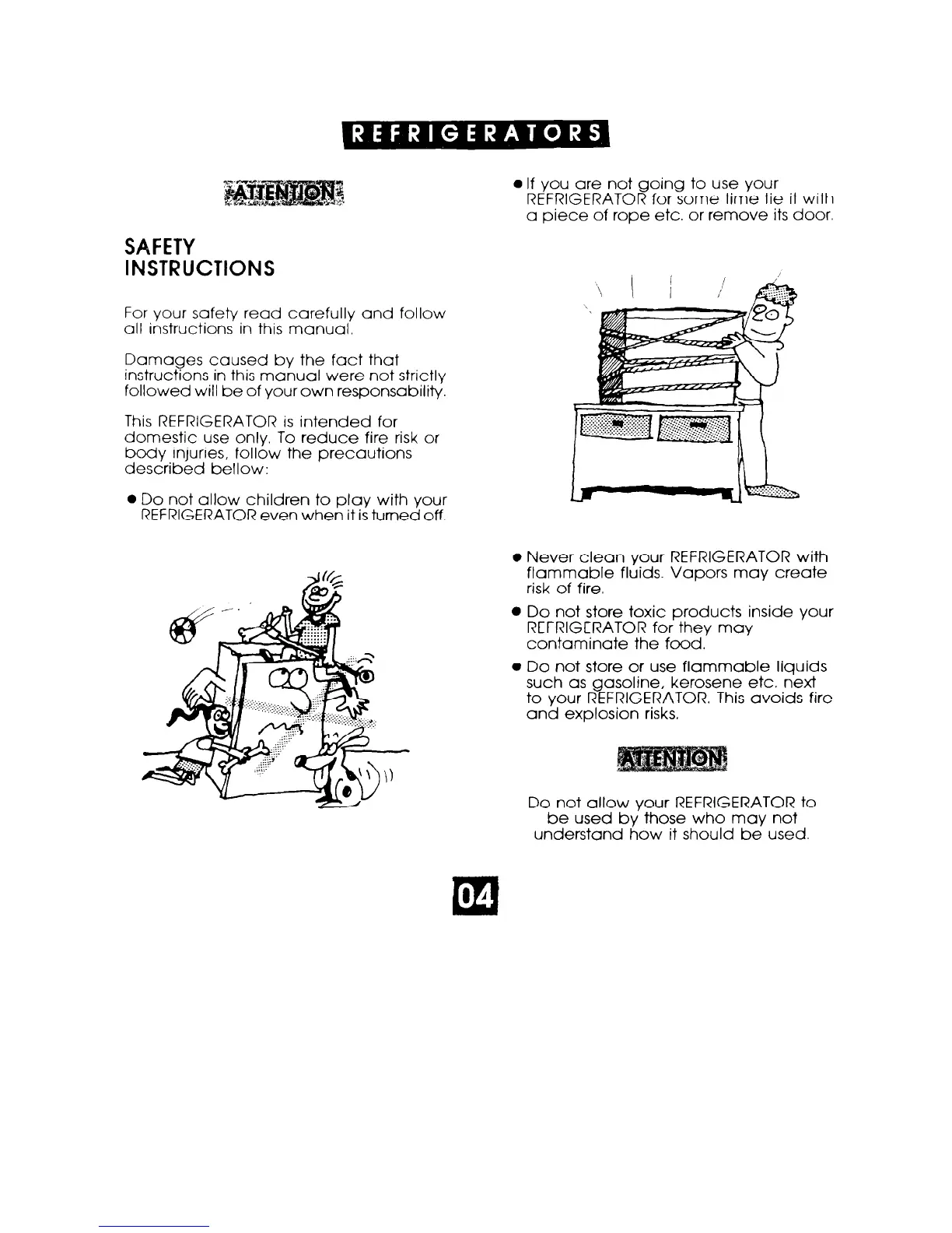 Do not allow your REFRIGERATOR to