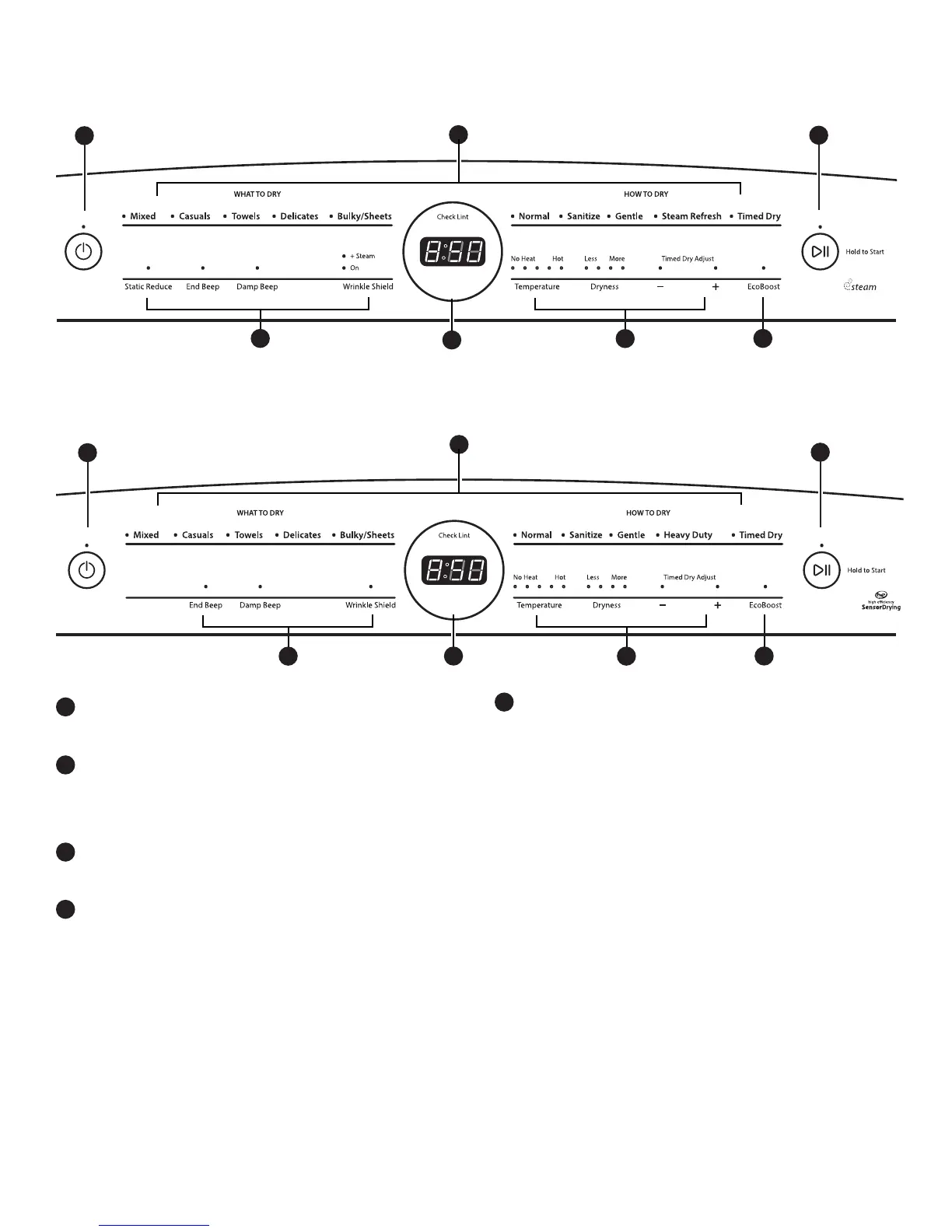 Touch to turn the dryer on and off. Touch to stop/cancel