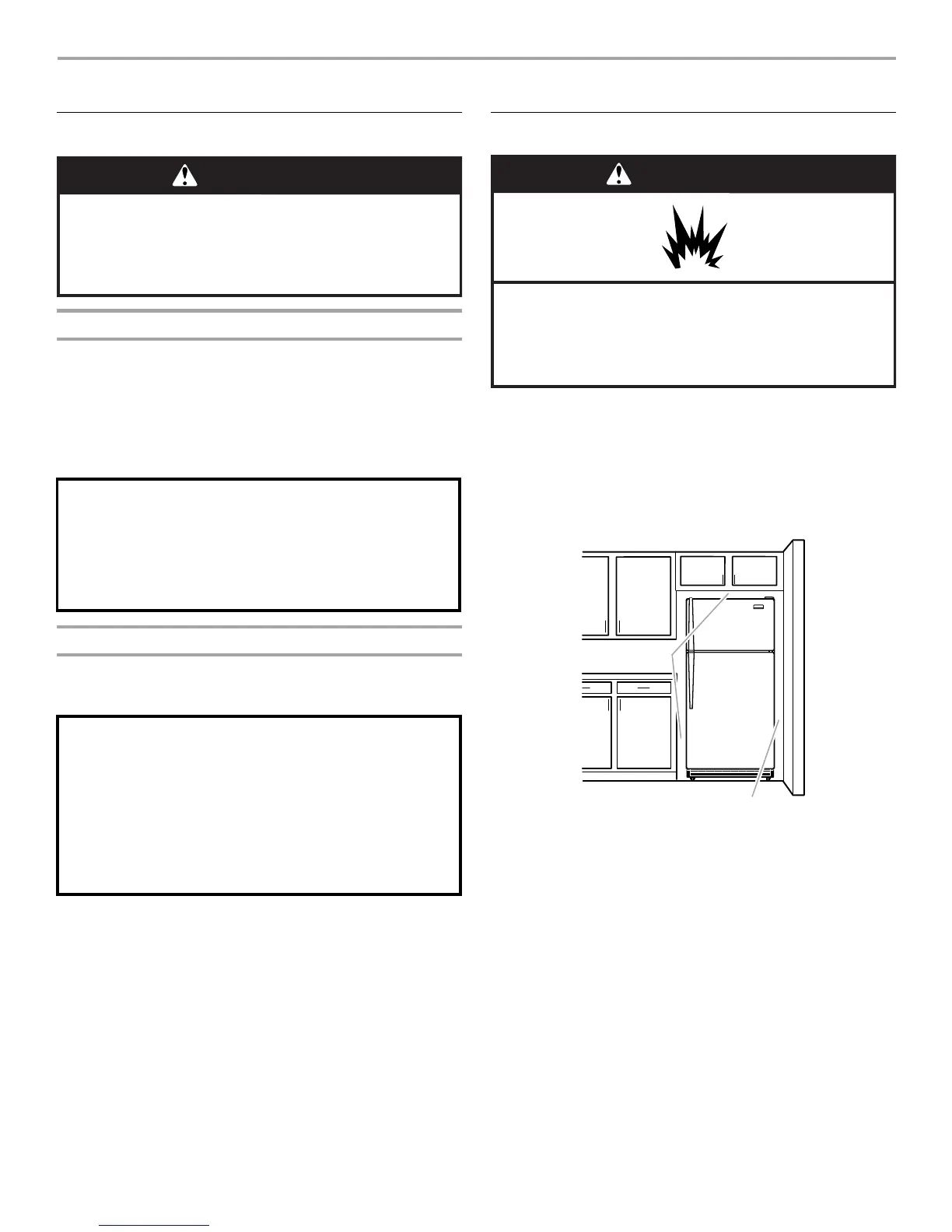 refrigerator next to a fixed wall, leave 2" (5.08 cm) minimum on