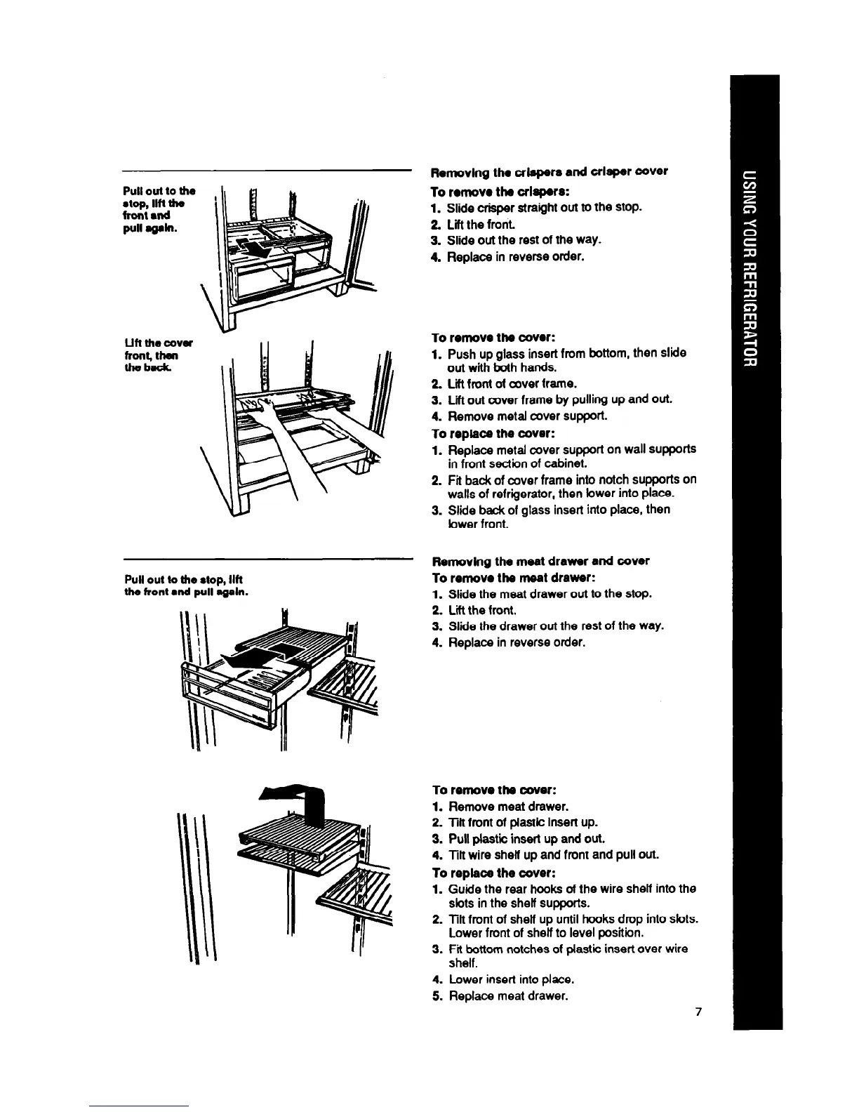 Flsmovlng the meat drawer and cover