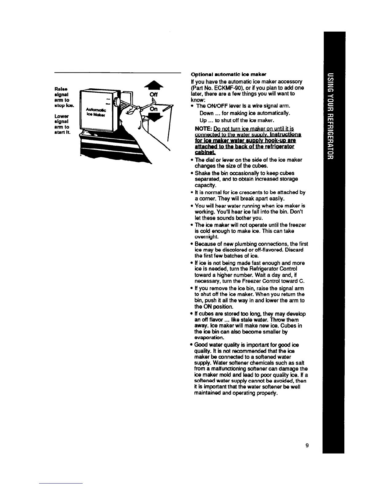 ice is needed, turn the Refrigerator Control