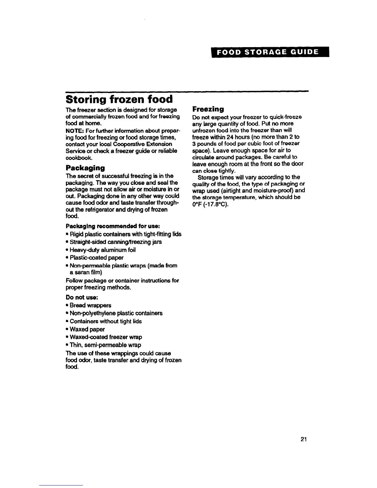 ing food for freezing or food storage times,