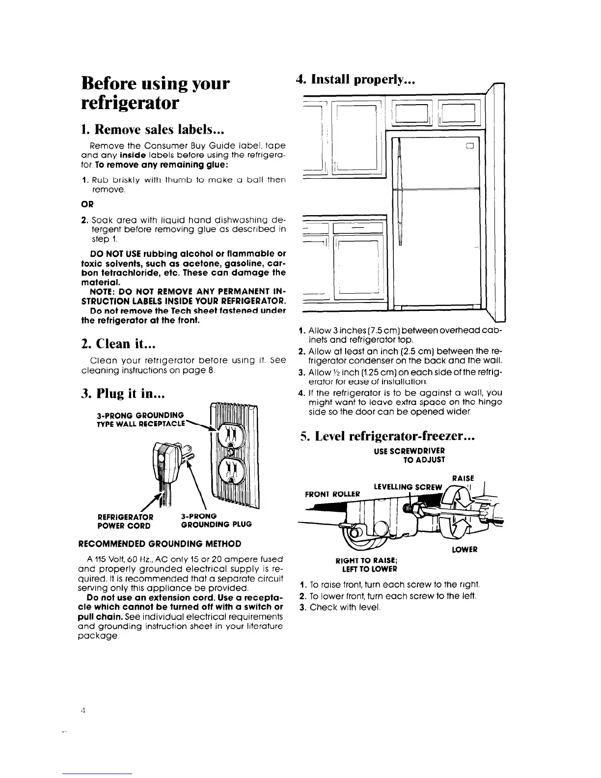 3. Allow ‘/2 inch (1.25 cm) on each side of the refrig-