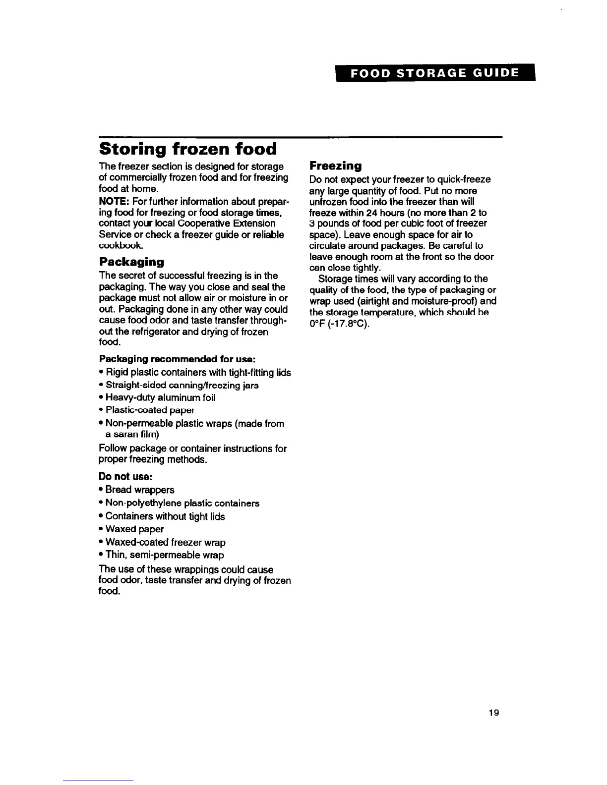 ing food for freezing or food storage times,